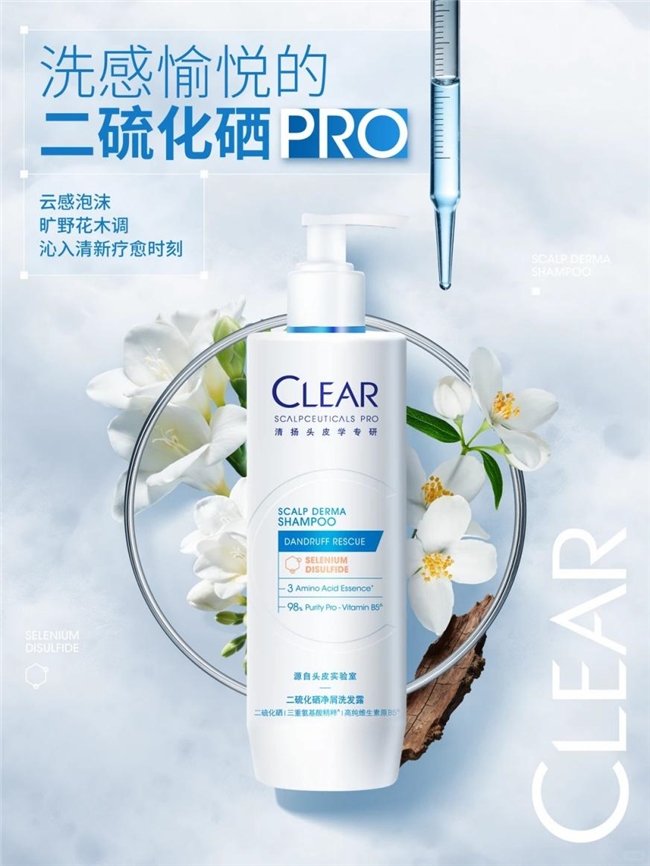 清扬凭借 50 年头皮学专业研发沉淀,联合 200 + 皮肤学专家打造二硫化硒蓝 C 瓶,突破传统去屑产品局限,兼顾高效去屑、长效控油与头皮修护,重新定义专业去屑洗发水标准。